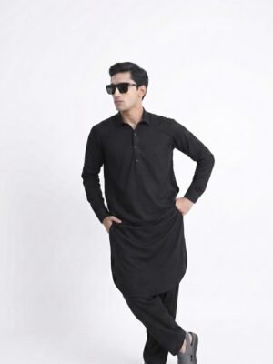 Command attention in timeless style with the PATHAAN Signature Black Kameez Shalwar, crafted from luxuriously soft, high-quality cotton that blends comfort with understated elegance.
